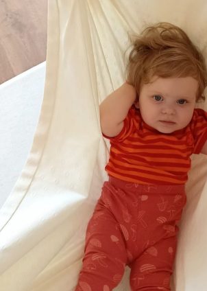 „A baba már nem akar háton feküdni, gyakran hasra fordul, nagyon aktív, kúszik, négykézlábazik. Stabilizálódik az ülés, szépen ül, egyenes háttal. Várjuk, hogy induljon a mászás. A pici használja a …