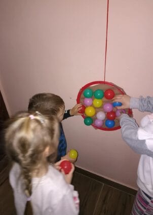 Szükséges eszközök: műanyag karika, ragasztószalag, kicsi színes labdák Egy műanyag karikát bevonunk átlátszó ragasztószalaggal úgy, hogy az egyik oldala ragadjon. Az elkészült karikákat kifüggesztjük a falra. A nagyobb gyerekek a …